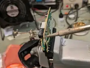 Если у вас есть пистолет для выпайки, это самый простой инструмент для работы. В противном случае можно использовать ручной вакуумный отсос для припоя или оплётку вместе с паяльником.