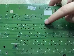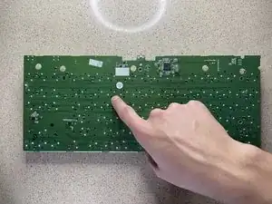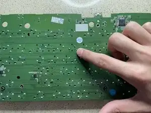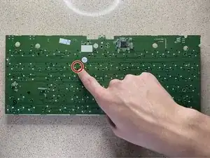 Чтобы найти паяное соединение на плате, посчитайте количество рядов вниз и клавиш от правой или левой стороны до неисправной клавиши/переключателя.