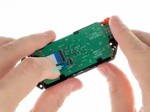 Отсоедините маленький ленточный кабель от платы. Используйте пластиковый инструмент, чтобы приподнять фиксатор, открыв тем самым разъём, и аккуратно извлеките кабель.