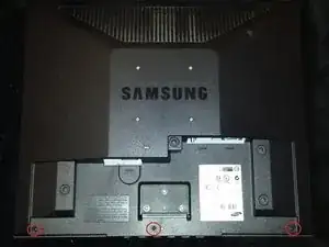 Вам понадобятся крестовая отвертка и новая плата питания, которую можно заказать онлайн. Сначала поместите монитор лицом вниз, затем снимите защитное пластиковое покрытие, если оно есть. После этого открутите три Schraube, показанные ниже. После их удаления подставка сможет быть снята.