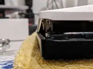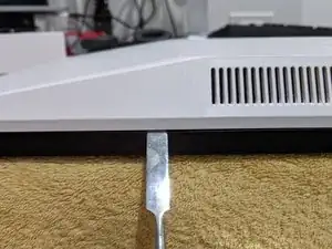 Далее, приоткройте пластиковый корпус. Это, безусловно, самая сложная часть и займет около часа, если делать аккуратно. Нижний край самый легкий. Вставьте металлическую лопатку в шов между черным и белым пластиком. Поверните ручку лопатки вниз, чтобы вынудить белую пластиковую деталь наружу.