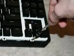 Удалите четыре пластиковые крышки и резиновые ножки с всех четырех углов клавиатуры.