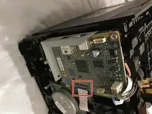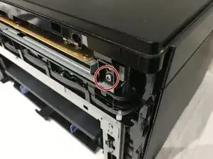 Отвинтите филипсовый винт 7 мм, крепящий модуль Wi‑Fi к принтеру, и снимите модуль Wi‑Fi.