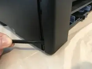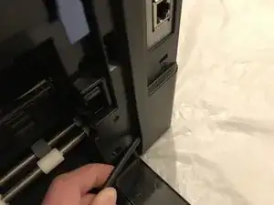 Отщёлкните задний край боковой крышки, поддев её от задней панели принтера.