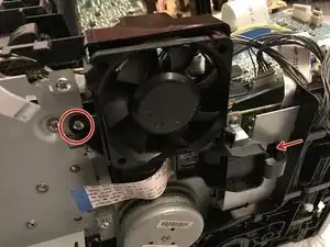 Выверните крестообразный винт 5 мм М3 с кронштейна вентилятора.