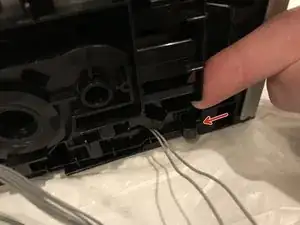 Отщёлкните задний конец пластиковой отделки, поддев от задней панели принтера.