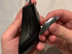 Снимите белую бумагу/пленку с задней стороны подошвы мыши с помощью пинцета, чтобы обеспечить правильное скольжение по коврику. Повторите для каждой из подошв мыши.