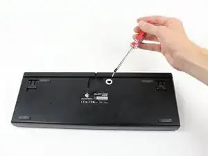 Отверткой Philips #0 отверните винт длиной 0.5 см на задней панели клавиатуры.