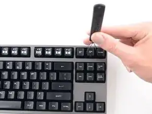 Наденьте съемник колпачков на колпачок над клавишей с неисправным светодиодом и тяните вверх.