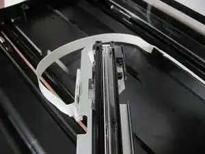 Теперь, когда световая сборка сканера свободна. Поднимите ее из сканера и отключите большой белый провод, который соединяет ее с остальной частью принтера.