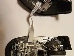 Для сборки устройства выполните указанные действия в обратном порядке. Проверьте мышь, чтобы убедиться, что полоска подключения установлена правильно; при необходимости вернитесь и убедитесь, что все провода были подключены корректно.