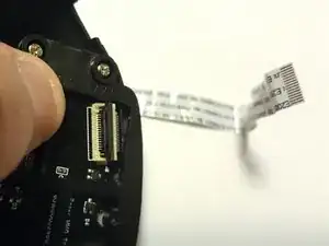 Поднимите чёрную фиксирующую защёлку на каждом конце белой полоски подключения, удерживающей боковые кнопки на печатной плате.