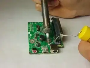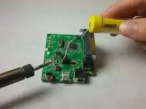 Припаяйте четыре угла порта mini USB к соответствующим металлическим элементам на материнской плате.