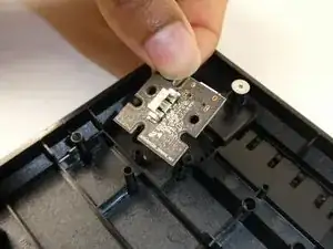 Она находится в верхнем левом углу и удерживается двумя винтами 6,5 мм крестовой отвёрткой #0.