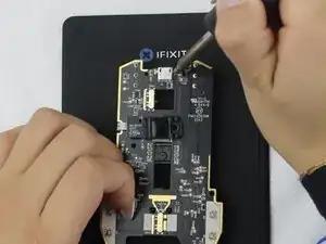 С помощью крестовой отвертки Phillips #1 удалите два винта 5,4 мм, чтобы отделить материнскую плату от нижней части корпуса.