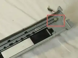 Снимите винт Torx T10 12 мм с левой стороны узла направляющей.
