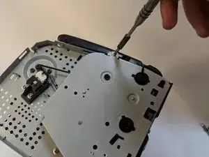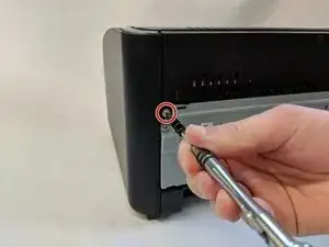 Отверните винт Phillips #1 длиной 6 мм на задней части принтера.
