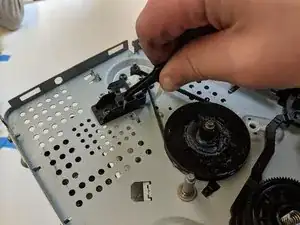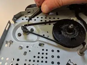 С помощью пинцета снимите свободный приводной ремень.