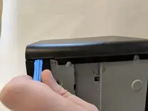 С помощью пластиковой лопатки снимите корпус кнопки с верхней левой части принтера.
