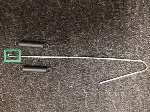 Для снятия пружины требуется прочный крючок. Пример на фото сделан из проволочного вешалки.