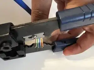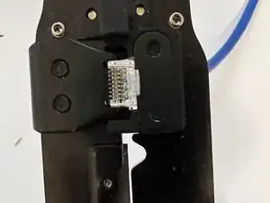 Вставьте разъём с присоединённым кабелем в обжимной инструмент.