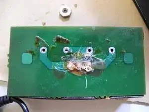 Теперь как можно ближе к зелёной плате отрежьте красный, зелёный и белый провода, припаянные к плате, бокорезами или похожим инструментом. Обязательно пропылесосьте или удалите любые мелкие обломки проводов. Мы не хотим, чтобы что‑то замыкало цепь.