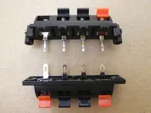 Я купил несколько запасных разъёмов, которые по габаритам похожи на оригинальные. Отверстия для винтов также совпадают с отверстиями в корпусе сабвуфера. Однако есть проблема. Обратите внимание на разницу в ширине между припойными язычками новых и старых разъёмов.