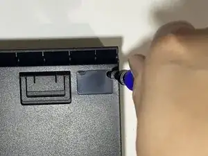 Снимите верхние резиновые ножки, чтобы открыть скрытые винты.
