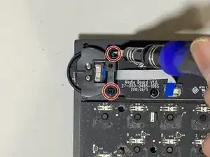 Отверткой Phillips #0 отвинтите два винта (6 мм), фиксирующие регулятор громкости.