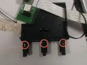 Выдавите белые соединители из их фиксаторов в чёрной части. Это отсоединит держатель картриджа.