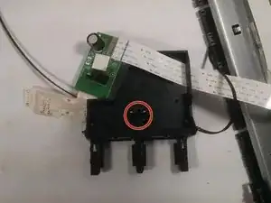 Отсоедините шлейф от принтера, потянув за синий корпус на конце, извлекая его из белого держателя.