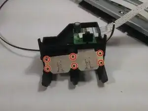 На держателе картриджа найдите винты, удерживающие зелёный жёсткий диск. Отвинтите эти винты.