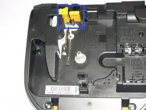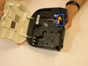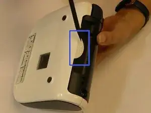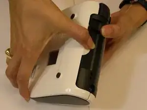 Переверните устройство и найдите круглую часть прямо рядом с лицевой панелью. Аккуратно, но крепко нажмите её вниз. Одновременно, удерживая обе стороны устройства, аккуратно раздвиньте их, так как некоторые кабели подключены к обеим частям.