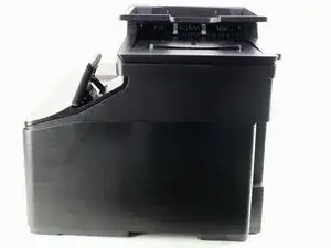Переверните принтер так, чтобы правая сторона оказалась внизу, а вы смотрели на дно.