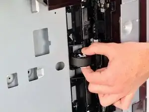 Используйте металлическую лопатку или маленькую плоскую отвертку, чтобы поднять защёлки по обеим сторонам ролика.