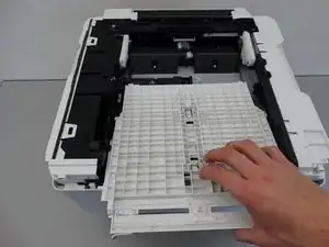 Выньте белый лоток ручной подачи бумаги.