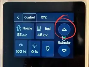 В окне управления нажмите кнопку вверх для экструдерa.