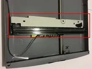 Используя руки или металлическую лопатку, сдвиньте пластиковую планку внизу стеклянной платы сканера вперёд до упора.