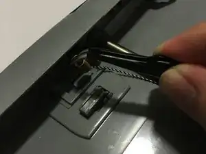 С помощью пинцета аккуратно снимите металлическую пружину с пластикового крючка.