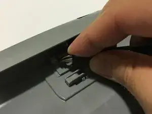 Найдите маленькую металлическую пружину за передними кнопками Canon CanoScan N670U.