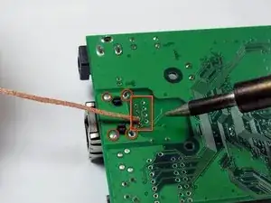 Переверните основную плату и с помощью паяльника и оплетки для выпаивания распаяйте 12 контактов, которыми порт закреплён на плате.