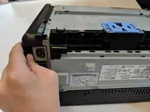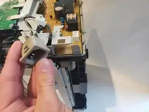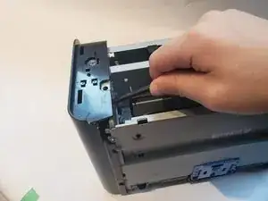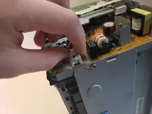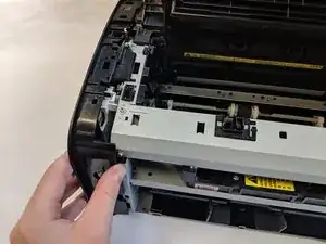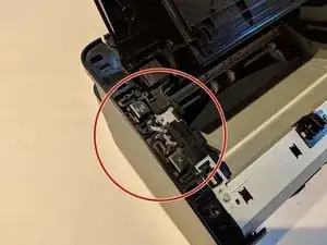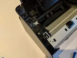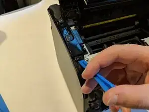 С помощью пластиковой лопатки снимите корпус кнопки с верхней левой части принтера.