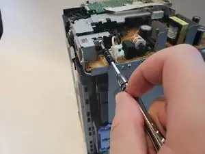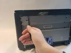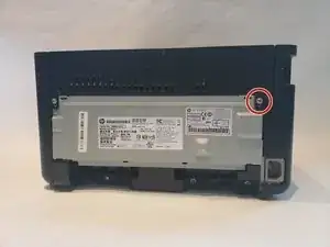 Отверните винт Phillips #1 длиной 6 мм на задней части принтера.