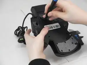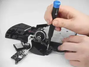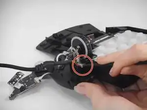 Удалите винт Philips #0 длиной 5,9 мм, который крепит шнур.