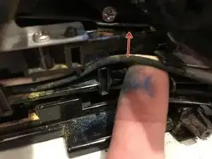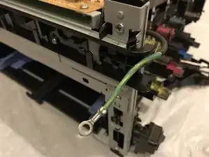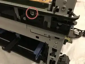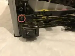 Отвинтите филипсовский винт длиной 7 мм, удерживающий кронштейн выключателя питания на принтере.