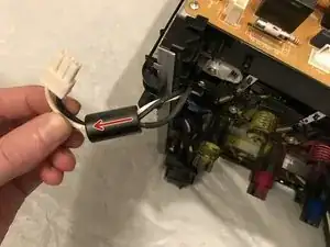 Освободите оставшиеся проложенные кабели рядом с выключателем и снимите сборку жгута проводов с принтера.