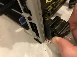 Примечание — для отщёлкивания правого конца требуется открыть крышку тонера для доступа.