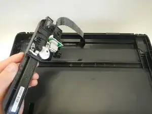 Осторожно поднимите деталь сканера, как показано, чтобы увидеть нижнюю сторону и проводку.