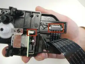 Осторожно снимите 2 шлейфа, показанные на изображении, потянув их от детали сканера.