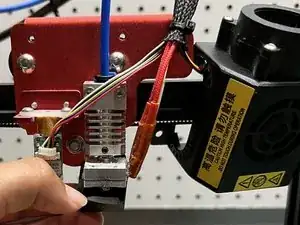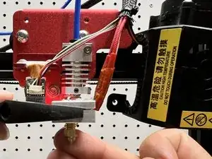 Когда нагревательный блок остынет, слегка закрутите новое сопло на нагревательный блок.